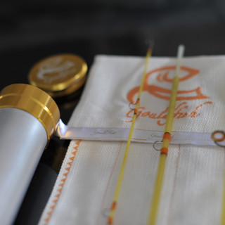 The whole package has been set off with the addition of my favourite Wychwood River and Stream reel and a Shadow Fly fishing 4wt line coloured to match the wraps. Of course the package wouldn't be complete without our signature rod sock (thanks to Mrs Gouldfish) and aluminium rod tube.