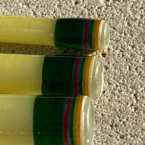 Through subsequent emails, Ben mentioned that he was a very keen brook trout fisherman and that it was what the rod would primarily be used for. Taking that as inspiration I decided to play around with a colour scheme that would reflect the brook trout and suggest this as an alternative. After a couple of different variants we found a perfect combination for the wrap which led to the final design. It became clear that the Masur birch was no longer the right wood for the insert so I found a piece of olive wood with a slight orange tint to it and some lovely figuring in it.